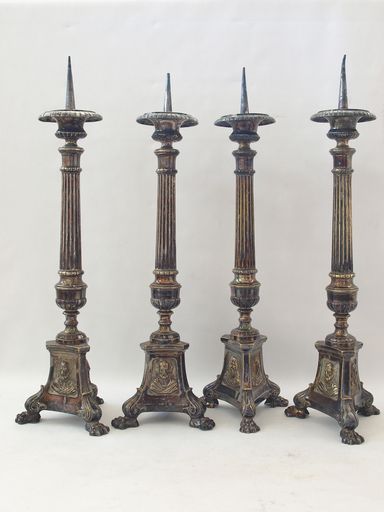 Ensemble de 6 chandeliers en argent, représentation : saint Joseph, Marie, Jésus, 19e siècleImmatriculation