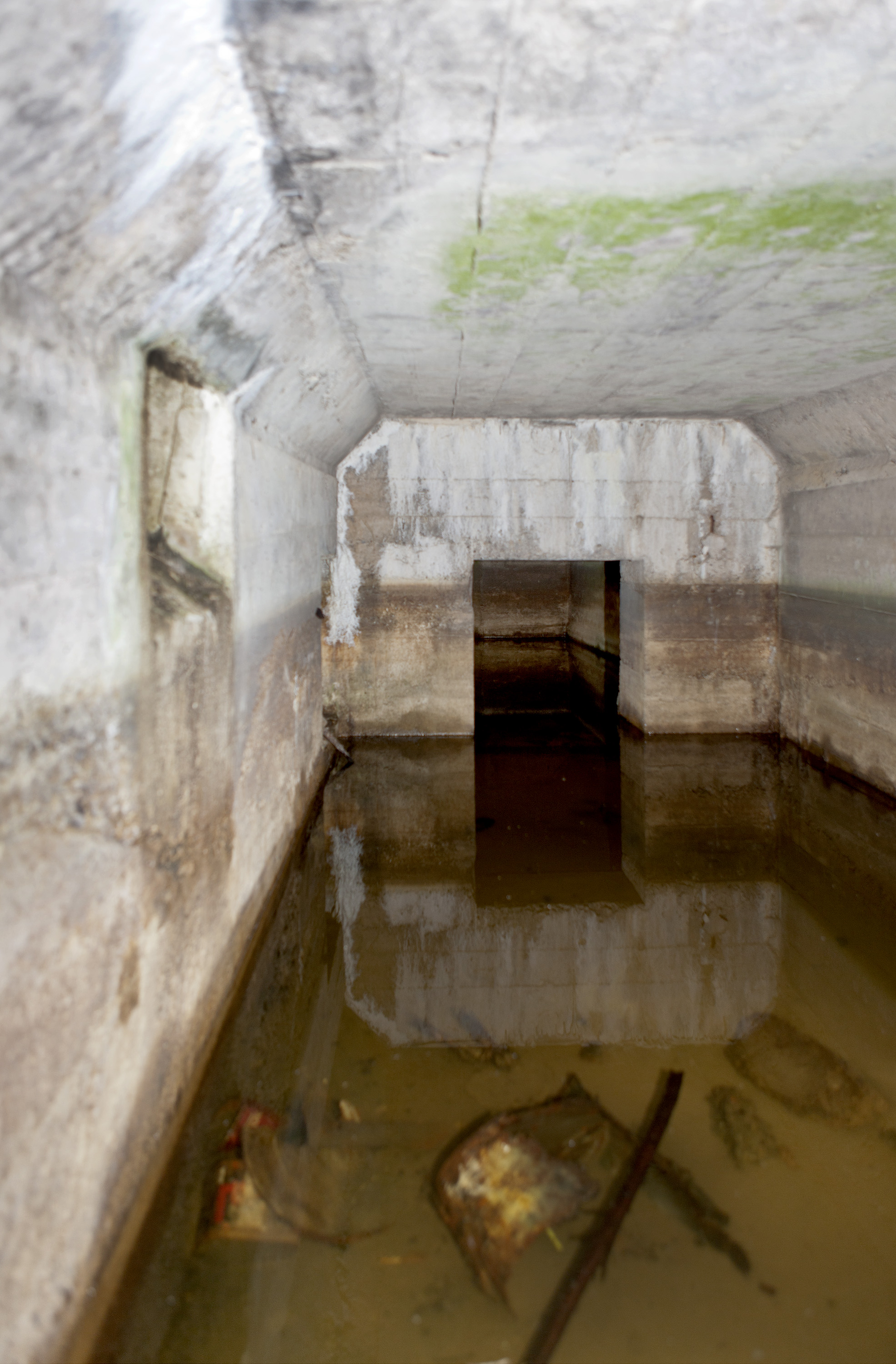 Vue en enfilade des deux salles de l'abri, depuis l'entrée estImmatriculation