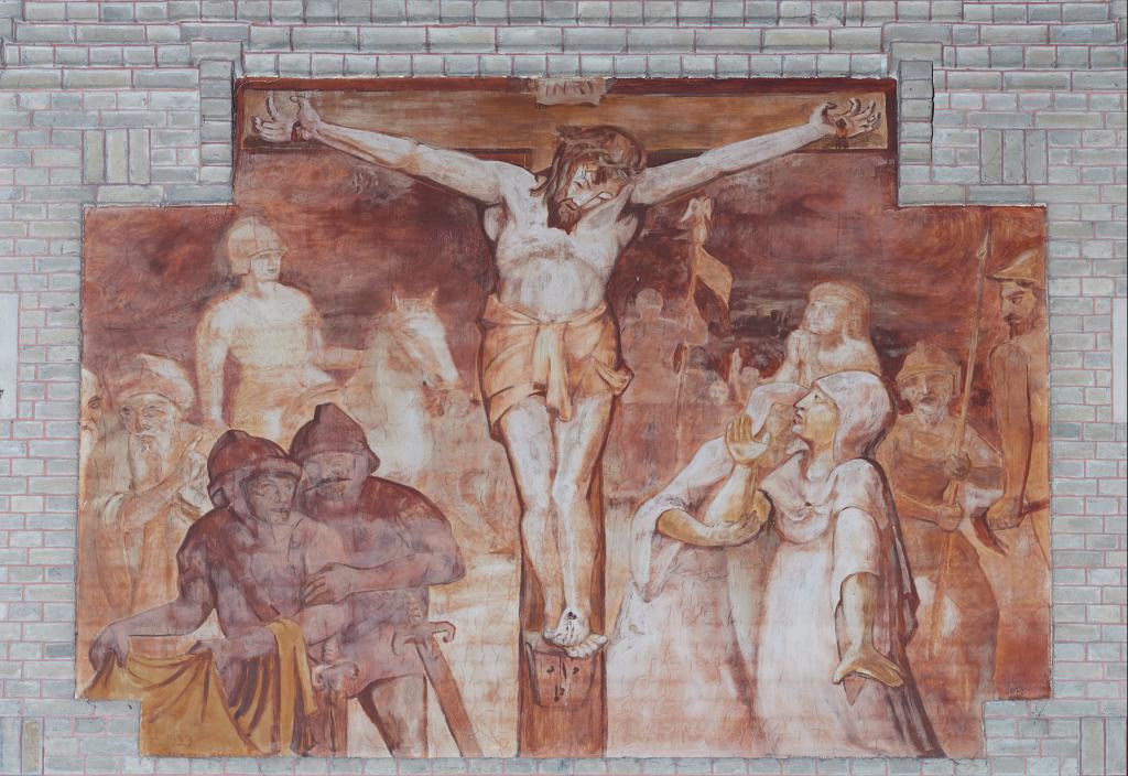 Vue de la troisième peinture du côté est : la Crucifixion.Immatriculation